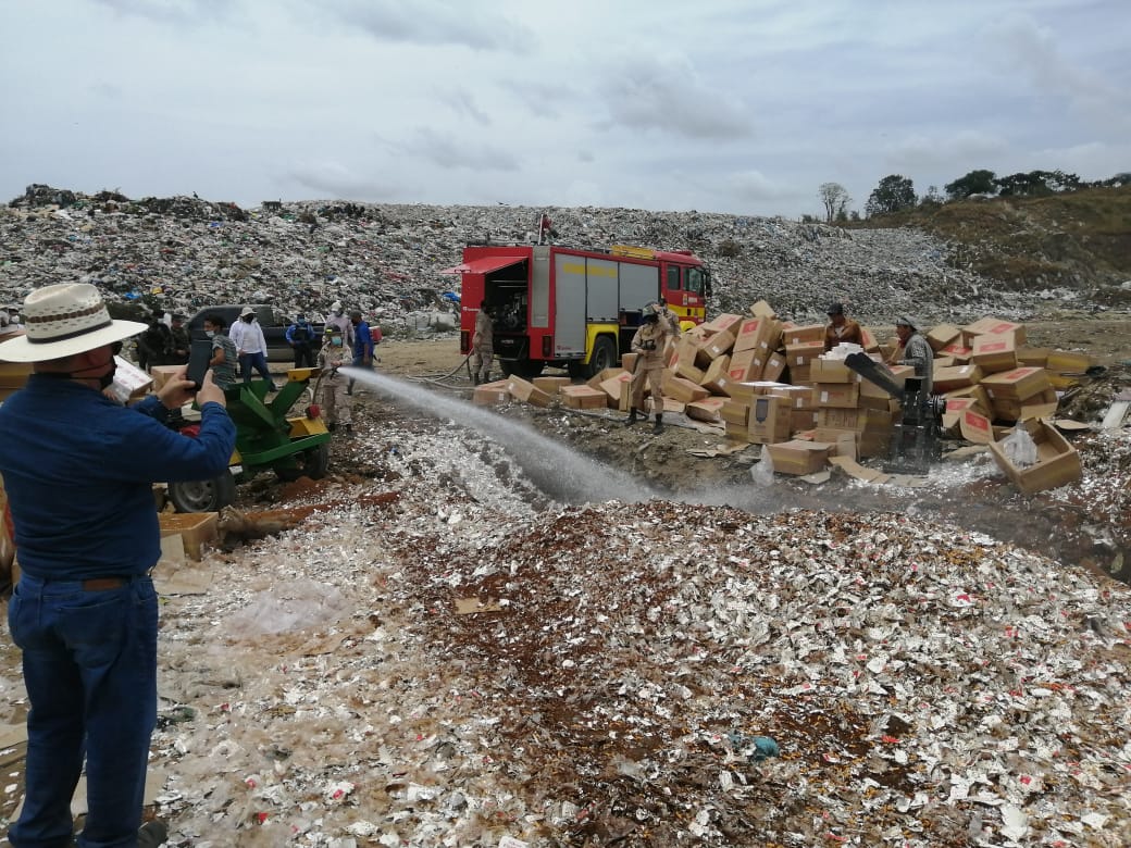 Más de 450 cajas de cigarrillos fueron decomisadas y destruidas en las instalaciones del Relleno Sanitario, ubicado en la aldea Ocotillo, municipio de San Pero Sula, departamento de Cortés.