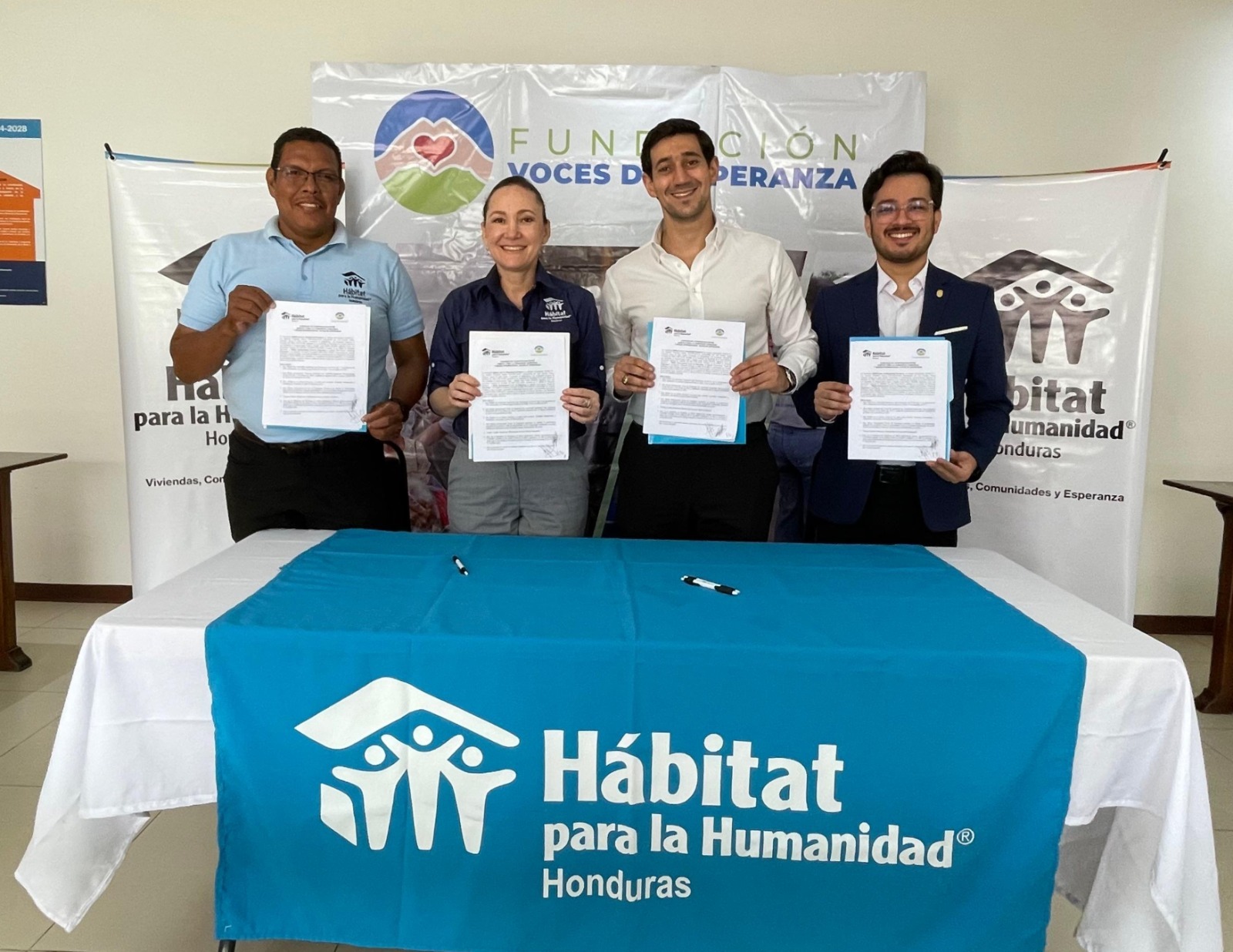 Comprometidas con la transformación social y el bienestar de las familias hondureñas que enfrentan condiciones precarias de vivienda, las organizaciones Hábitat para la Humanidad Honduras y Misión Internacional Voces de Esperanza firmaron un Convenio de Cooperación Interinstitucional, que permitirá unir esfuerzos y recursos para el desarrollo de proyectos orientados a mejorar la calidad de vida de comunidades vulnerables a través de soluciones habitacionales sostenibles.