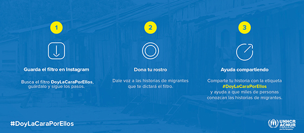 El público general también está invitado a “dar la cara por ellos” a través de un filtro de Instagram en donde todo el mundo podrá donar su rostro para leer parte de la historia de una persona, y luego formar parte de un gran mosaico de fotografías que darán cara a una persona desplazada.