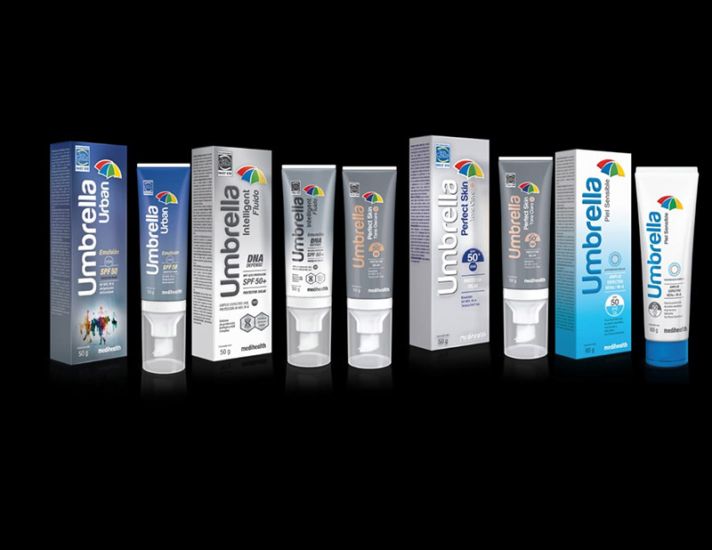 - “Umbrella Piel Sensible”, una fórmula especial que protege la piel de la radiación solar UVB y UVA y del efecto nocivo de la radiación UV-Visible para la piel delicada y con reacciones alérgicas.