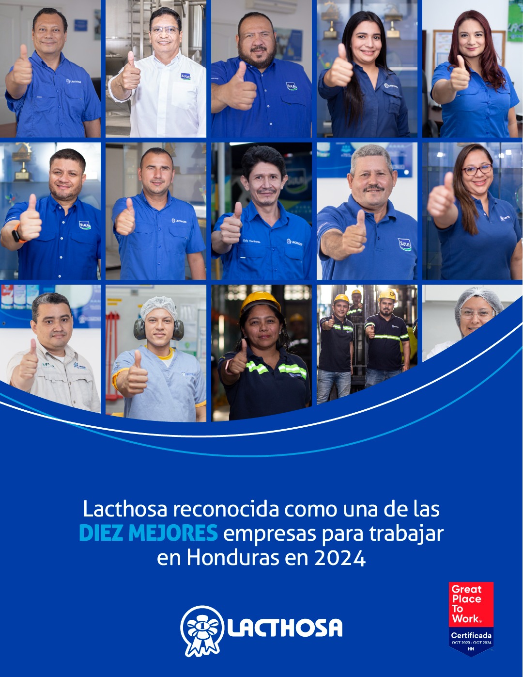 Con una fuerza laboral de más de 2, 700 colaboradores, LACTHOSA ha logrado posicionarse en el top 10 de las mejores empresas para trabajar en Honduras a través de una sólida auditoría de cultura organizacional.
