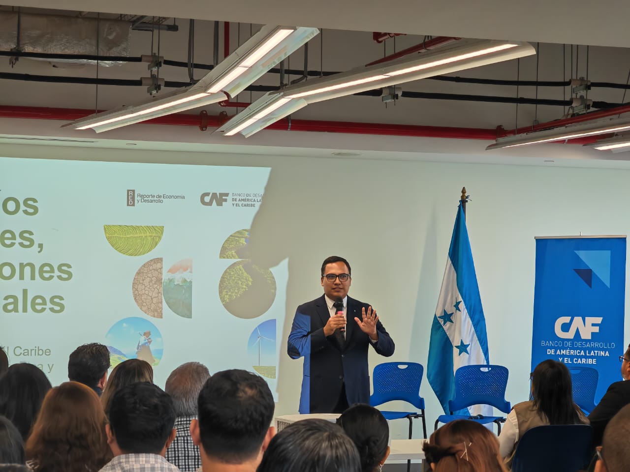 Le correspondió a Ricardo Estrada, economista principal, de la Dirección de Investigaciones Socioeconómicas de CAF, hacer la presentación del RED en Honduras, destacando que un aspecto medular para disminuir las emisiones de gases de efecto invernadero en el país es frenar la deforestación. “El reto de detener la deforestación está asociado con el de fortalecer la sostenibilidad del sector agropecuario. Dos ámbitos de acción sobresalen al respecto. Por un lado, un compromiso creíble con frenar el crecimiento de la frontera agropecuaria. Por el otro, el aumento de la productividad agropecuaria y el uso de prácticas sostenibles en este sector. En este ámbito, Honduras ha hecho avances, con un aumento del rendimiento agropecuario en el país de 80% entre 1961 y 2021. Sin embargo, este incremento es menor que el ocurrido en otros países centroamericanos”.
