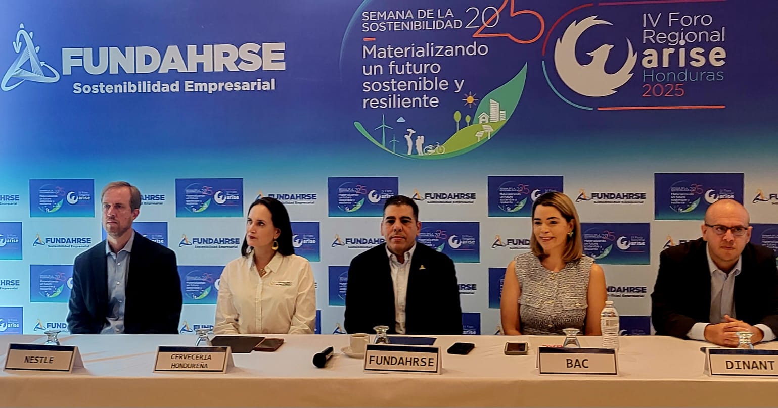 Después tuvieron lugar los representantes de empresas patrocinadoras describiendo sus proyectos de sostenibilidad y compartiendo experiencias en la resiliencia de los negocios: Sarah Zepeda, subgerente de mercadeo gerional/plataformas de BAC; Milene Fernández, gerente de reputación y sostenibilidad de Cervecería Hondureña; Victor Castro, gerente de sostenibilidad de Dinant e Ivar Pettersson, gerente general de Nestlé Hondureña.