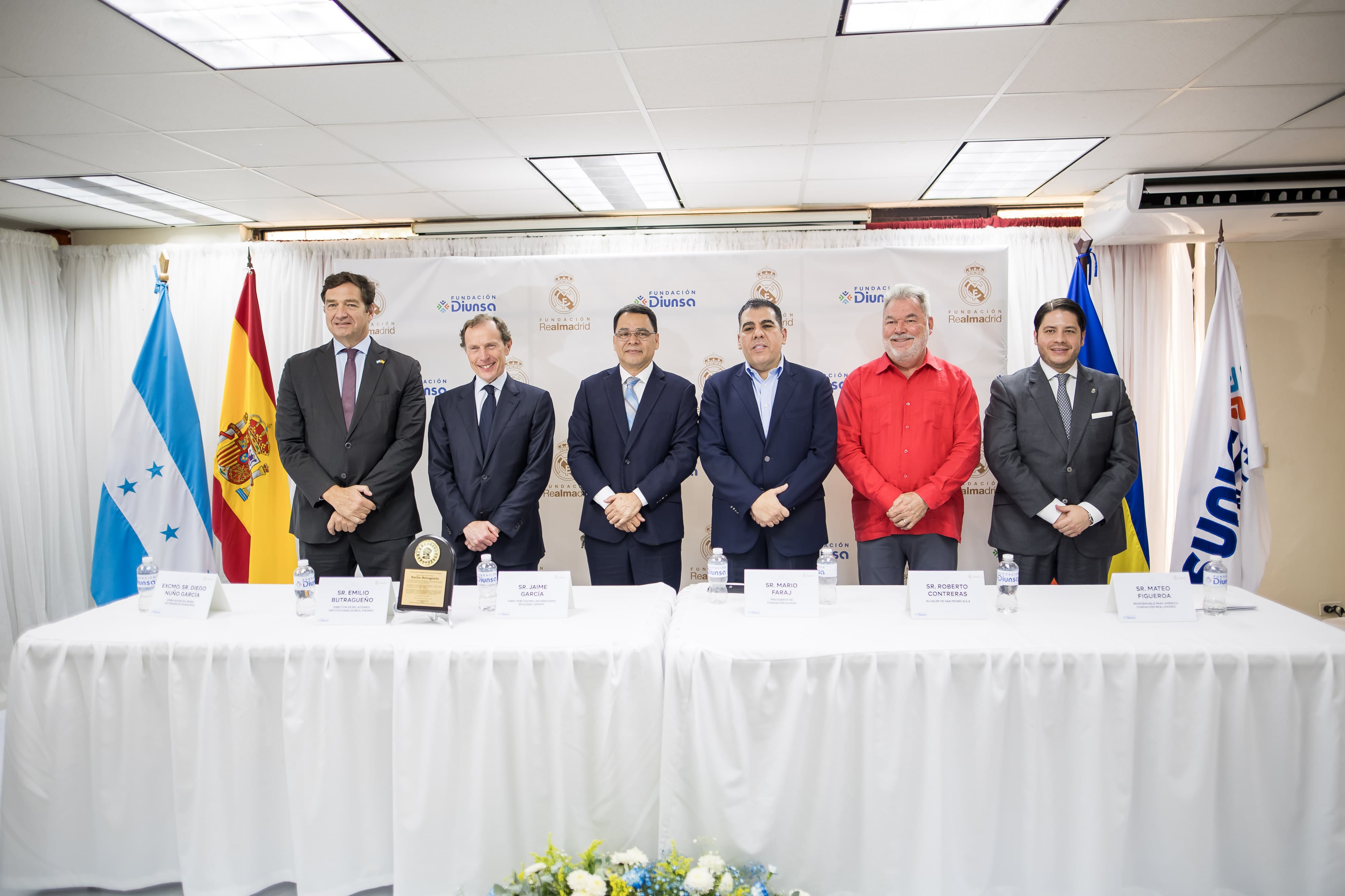 El acto inaugural tuvo lugar en la Biblioteca Infantil del centro universitario y contó con la participación de destacadas autoridades, entre ellas Mario Faraj, presidente de la Fundación Diunsa; Jaime García, director del Centro Regional Universitario; Diego Nuño García, embajador de España en Honduras; y Mateo Figueroa Tobón, Responsable de América en la Fundación Real Madrid.