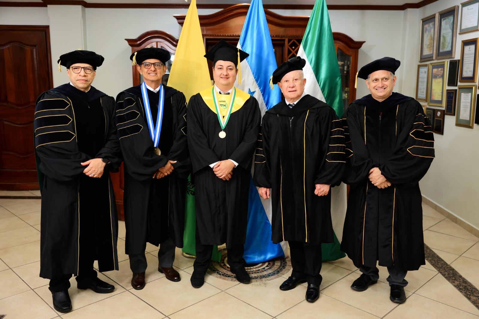 Asimismo, se otorgaron medallas de reconocimiento a otros egresados sobresalientes como Nelson Moreno Maradiaga, de la Maestría en Dirección Financiera, y Bettina Sunsin Dubón, Licenciada en Marketing, ambos ejemplo de esfuerzo sostenido, disciplina y superación constante.