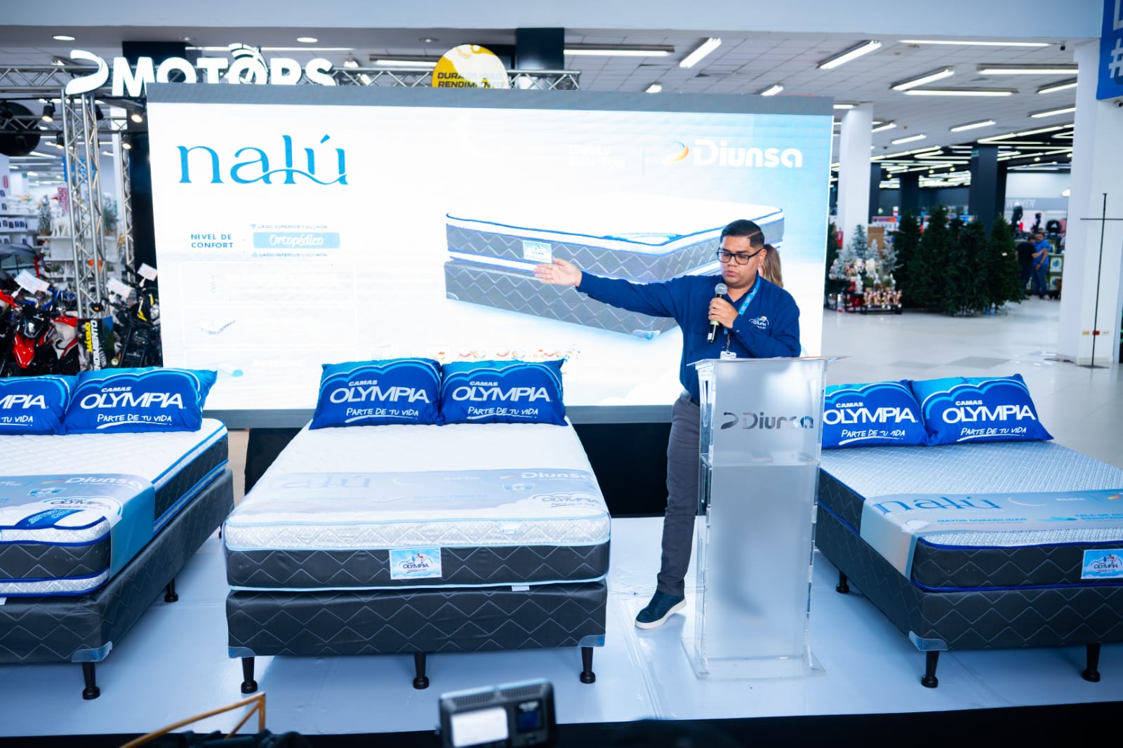 Mario Alejandro Faraj, gerente de Mercadeo de Diunsa, expresó en Diunsa nos enorgullece presentar junto a Camas Olympia esta nueva línea de descanso, que responde a nuestro propósito de innovar constantemente para mejorar el bienestar de nuestros clientes, ofreciéndoles productos que combinan tecnología, diseño y confort.