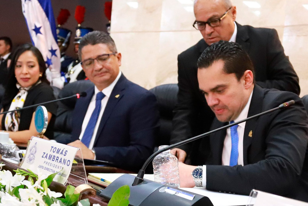 El Presidente del Congreso Nacional, Tomás Zambrano Molina entregó para sanción al presidente Nasry Asfura Zablah los decretos de Régimen de Importación Temporal, la venta del avión presidencial y el de la cobertura de la Universidad Nacional Autónoma de Honduras en departamentos donde no se contaba con este centro de estudios.