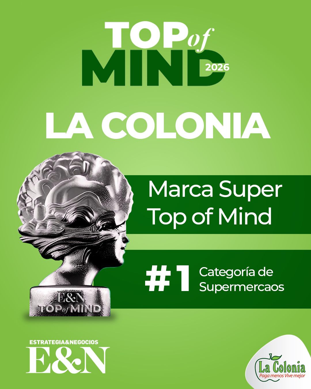 Supermercados La Colonia ha sido reconocida nuevamente en el Top of Mind 2026 de la revista Estrategia & Negocios, en alianza con Kantar Mercaplan.