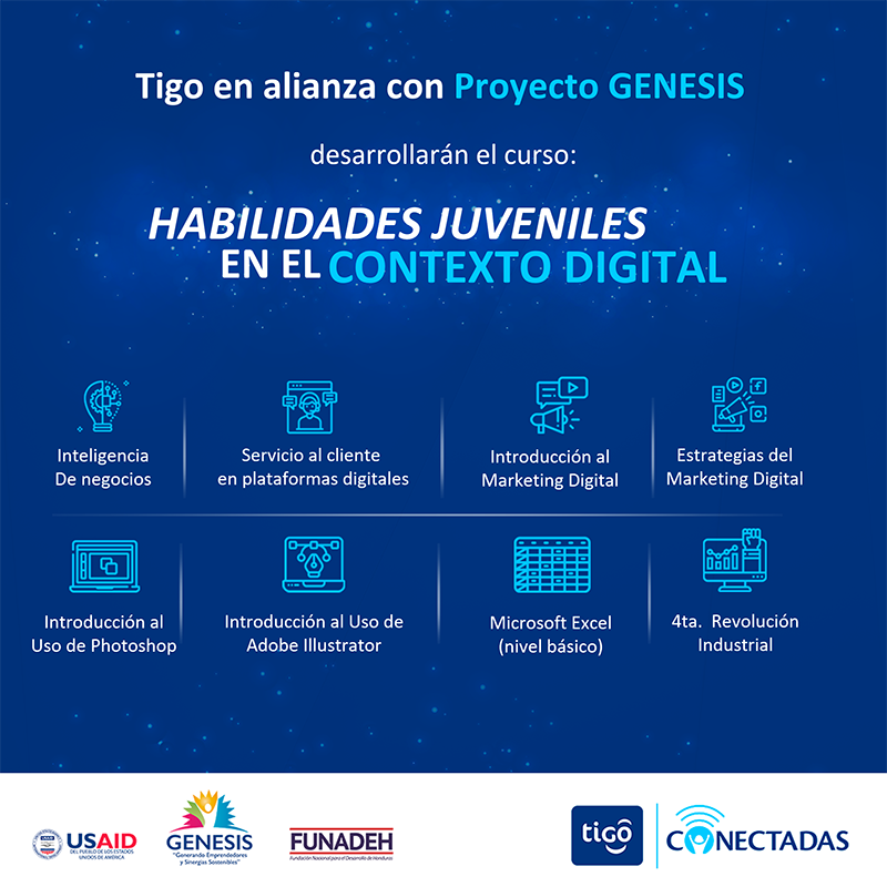 Con el firme propósito de continuar construyendo las autopistas digitales que conectan a las personas y mejoran vidas, Tigo bajo su programa de Responsabilidad Corporativa “Conectadas” junto con USAID, y proyecto Génesis de FUNADEH realizarán capacitaciones digitales dirigidas a jóvenes mujeres de diferentes municipios del país. Estas capacitaciones se enfocarán en temas de tecnología e internet, con el fin de contribuir en su educación y en el aprovechamiento de las herramientas tecnológicas para su desarrollo personal y profesional.