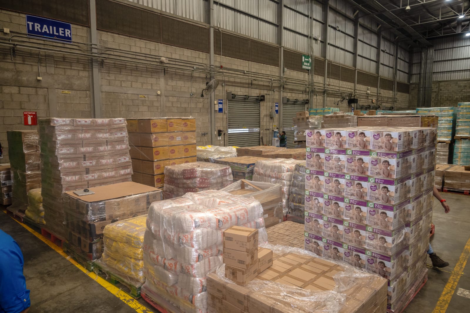 La donación incluye granos básicos, pastas, cereal, agua, jugos, leche, aceite y artículos de pieza, pañales, entre otros