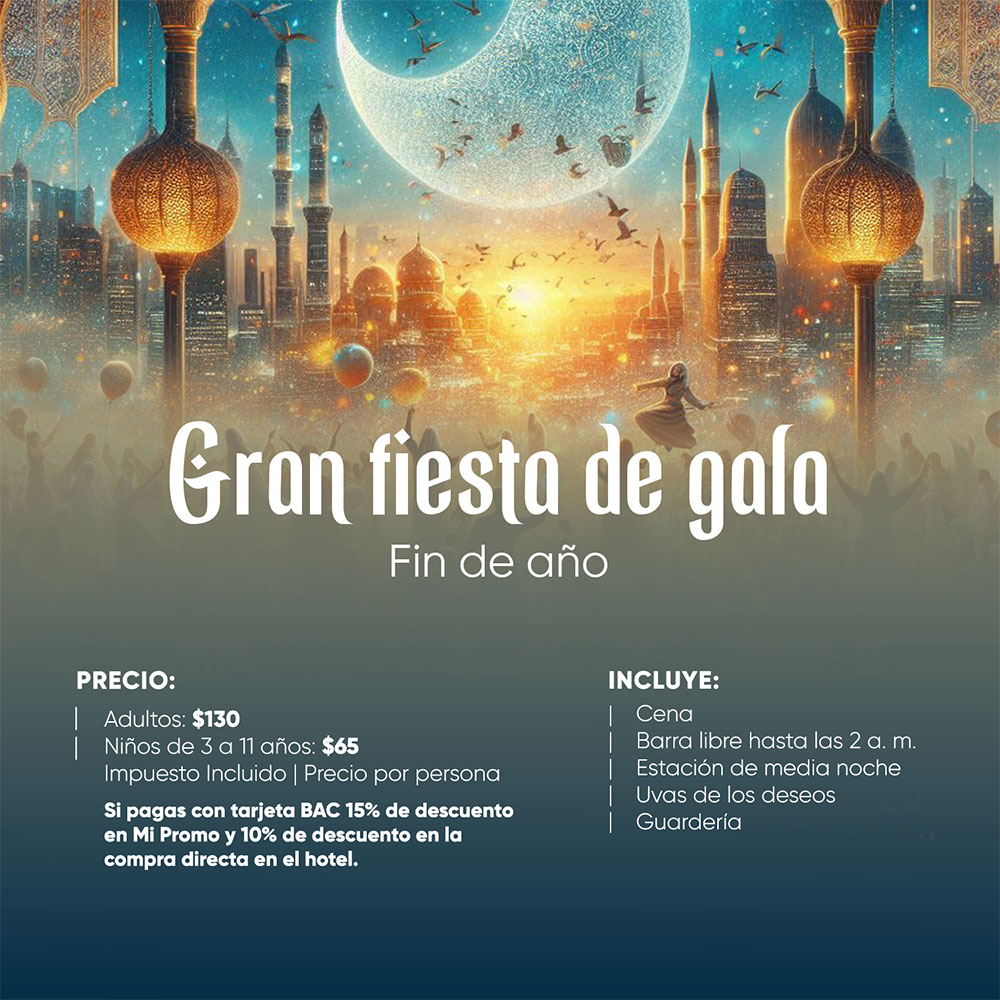 El fin de año es el momento perfecto para celebrar con quienes más queremos, y este 31 de diciembre, el Hotel Clarion® Tegucigalpa le invita a vivir una experiencia inolvidable en la exclusiva noche de gala "Las mil y una noches". Con una ambientación única inspirada en esta icónica temática, la velada promete ser un viaje lleno de magia, elegancia y emociones.