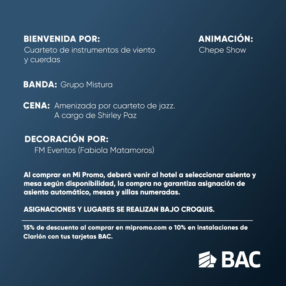 La noche promete sorpresas y emociones, destacando un show especial a la medianoche que sin duda será uno de los momentos más esperados de la velada. Además, el evento está pensado para que todos disfruten sin preocupaciones, ya que el Hotel Clarion® Tegucigalpa ofrecerá servicio de guardería infantil, brindando tranquilidad a los padres que asistan con sus hijos.