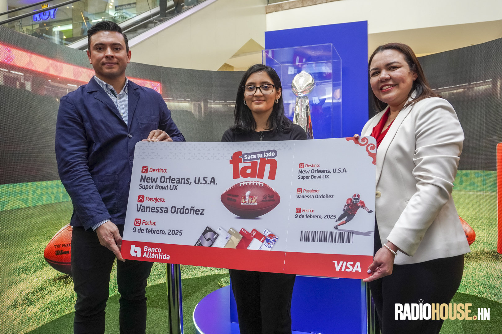 «Nos sentimos honrados de ser los anfitriones en Honduras para recibir el Trofeo Vince Lombardi. Queremos premiar a nuestros tarjetahabientes de Visa Atlántida con esta experiencia única y a los miles de fanáticos del fútbol americano en nuestro país, así como inspirar a las nuevas generaciones de atletas. En Banco Atlántida siempre estamos en constante búsqueda de experiencias únicas para nuestros clientes, y hoy también hicimos la entrega simbólica del boleto de avión a Nueva Orleans y las entradas al Super Bowl LIX a nuestra ganadora, Vanessa Ordoñez, quien disfrutará de este evento único en el mundo el próximo 9 de febrero, cortesía de Visa», comentó Julio Figueroa, Vicepresidente de Banca de Personas de Banco Atlántida.