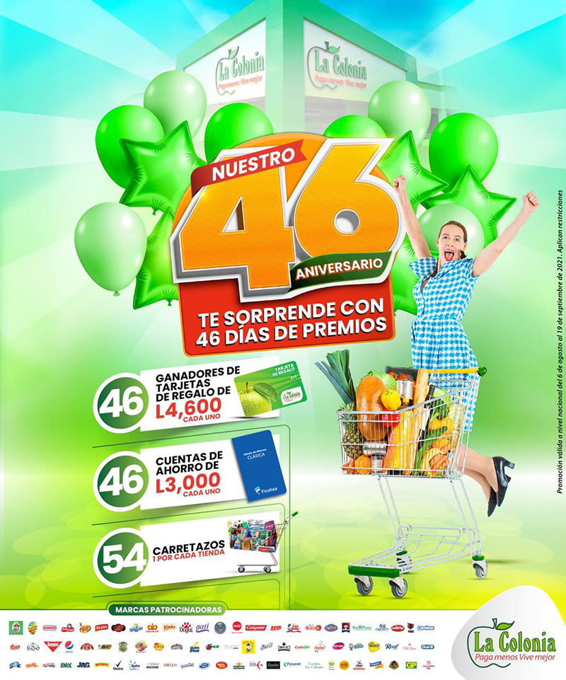 Hace 46 años Supermercados La Colonia empezó a escribir su historia en el supermercadismo en el país, ganándose un lugar en cada uno de los hogares de las familias hondureñas por su compromiso en brindar los mejores productos, increíbles ofertas, calidad inigualable y sobre todo una experiencia única de compra llevándole ahorro de verdad siempre con sus espectaculares promociones de alto impacto.