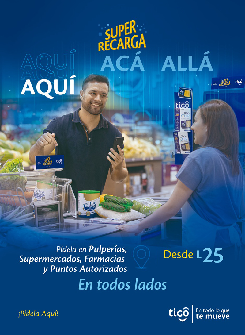 Tigo, empresa líder en telecomunicaciones en Honduras, presentó la campaña “Aquí, Acá y Allá”, con el objetivo de dar a conocer a todos sus clientes, los múltiples canales que tiene disponibles para adquirir una Super Recarga Tigo.