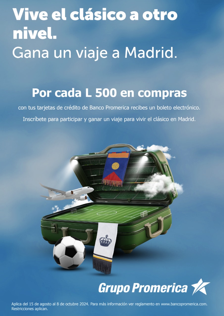 Banco Promerica anuncia su nueva y emocionante promoción “Gánate un viaje a Madrid”, diseñada para que los amantes del fútbol puedan disfrutar de una experiencia única. Esta promoción ofrece a los clientes la oportunidad de ganar increíbles premios simplemente utilizando sus tarjetas de crédito del Banco Promerica.