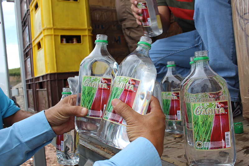 Mientras que las marcas de bebidas alcohólicas destruidas fueron de la Cerveza Pilsener y el agua ardiente La Cañita y El Chamaco en representaciones de un litro, un octavo y dos octavos.