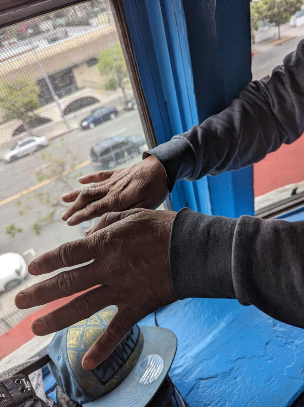 “La primera vez que vine fue muy duro. Me subí al tren conocido como La Bestia en 1999, cuando tenía apenas 22 años. Crucé todo México, un camino lleno de sufrimiento. Pasé hambre, sed, frío, noches sin dormir... y fui testigo de la muerte. Vi cómo asesinaban a personas. Ver esas cosas fue aterrador, traumático. Me marcó profundamente, aún hoy me causa tristeza recordarlo”, expresa mientras frota sus manos.