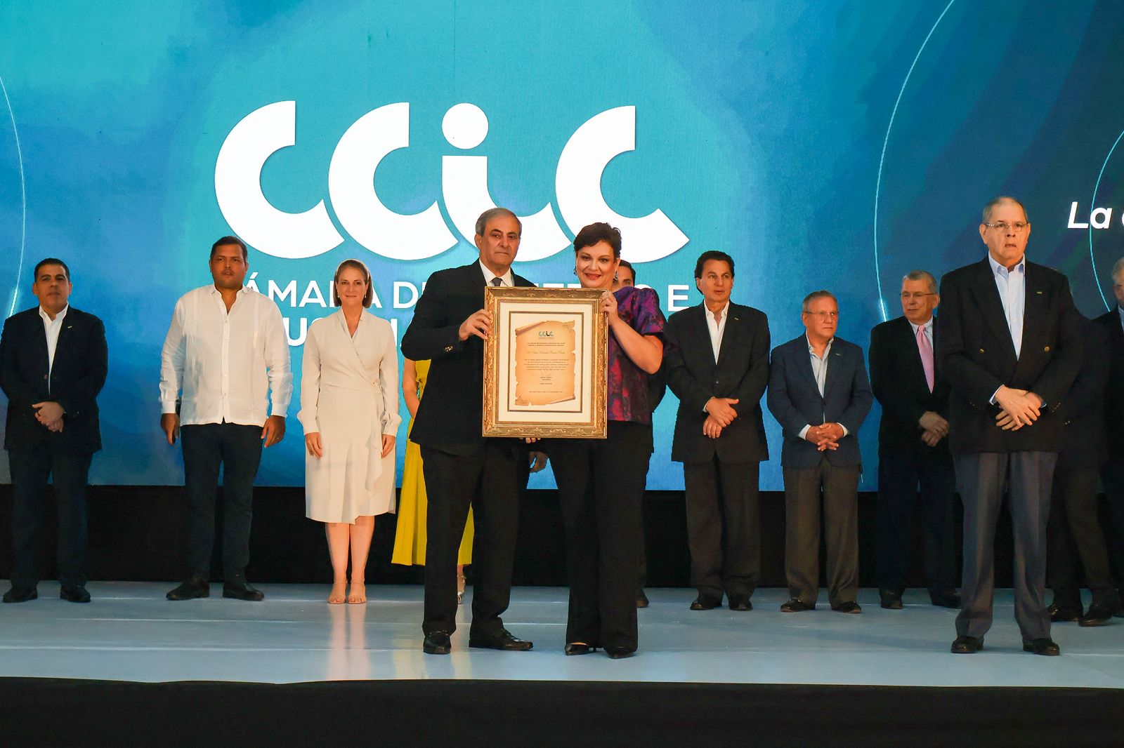 En el marco de este evento, la CCIC entregó a los expresidentes y miembros de Junta Directiva un pin de oro con las siglas CCIC. Asimismo, se otorgaron reconocimientos especiales a dos de sus empresas afiliadas: Cervecería Hondureña y Aura Minosa, por su contribución a iniciativas institucionales.