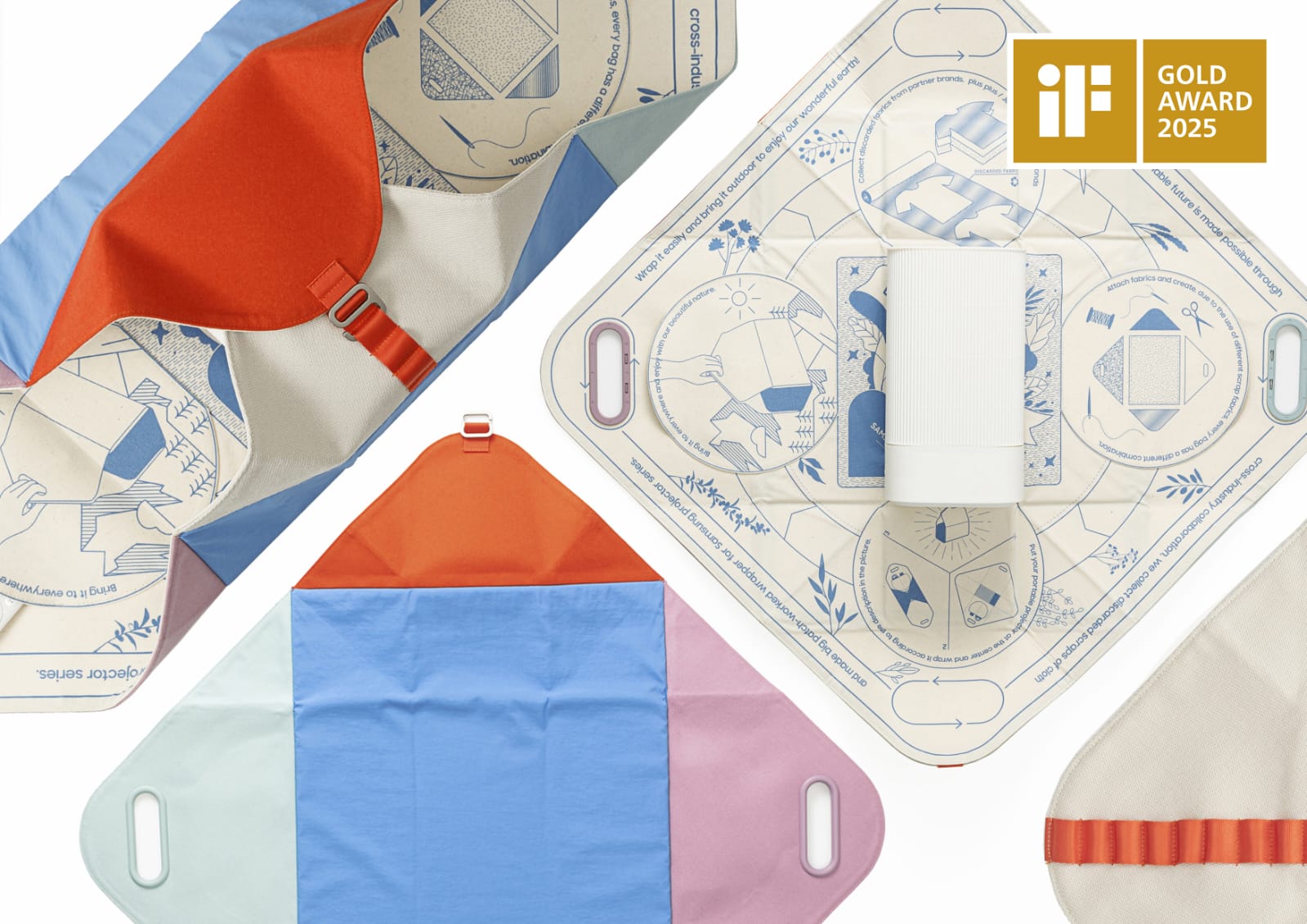 El Diseño & Comunicación Sostenibles, BOJAGI, un embalaje conceptual avanzado para pequeños proyectores portátiles, se inspiró en una herramienta tradicional coreana llamada bojagi. Este se implementó con retazos de tela y se diseñó para que se pudiera empaquetar y reutilizar de manera sostenible independientemente de su forma.